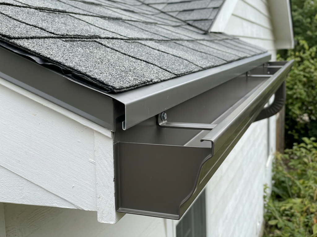 Our seamless gutter installation service uses 5-inch and 6-inch K-style aluminum gutters sized for your roof’s drainage requirements. A properly sized and installed gutter system is a key part of your leak prevention strategy.